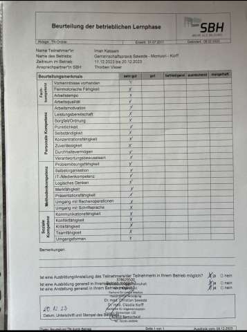 Ich bin zuverlässig, selbstständig, teamfähig, höflich und respektvoll – immer mit einem Lächeln 😃. Außerdem bringe ich Humor und gute Laune ins Team, sodass die Arbeit mit mir immer Spaß macht – ich bin mir sicher, dass Sie enttäuscht wären, wenn ich nicht Teil Ihres Teams wäre.