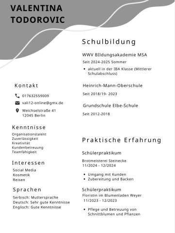 Wenn Sie interessiert sind, möchte ich Ihr Team gern durch meine Mitarbeit unterstützen. Bei weiteren Fragen stehe ich Ihnen gern zur Verfügung.